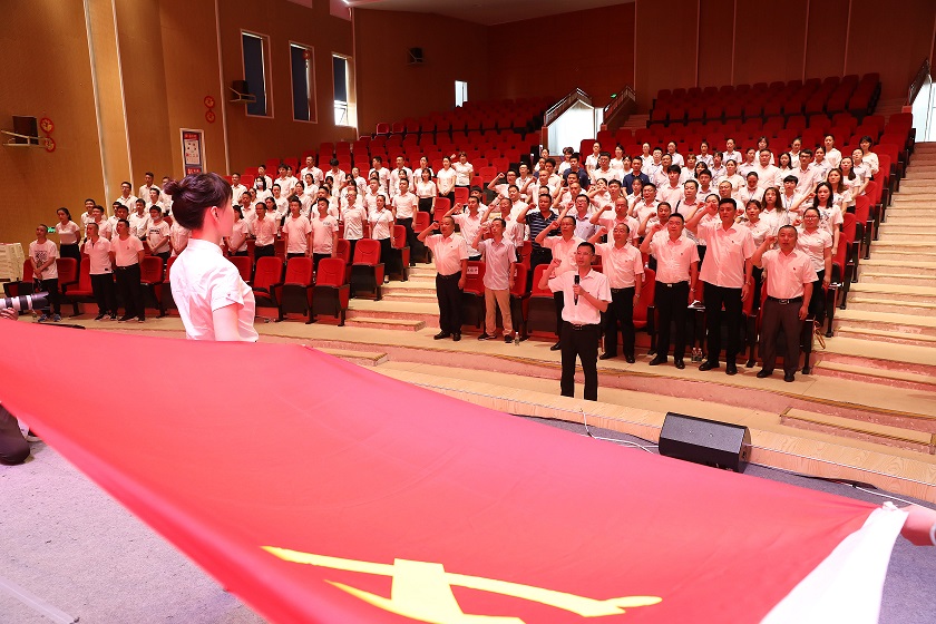 在雄壯的國歌聲中,大會拉開了帷幕。黨委副書記、紀委書記聶仕華帶領全體黨員重溫了入黨誓詞,以此牢記黨的宗旨,強化黨員意識。