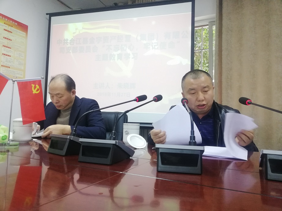 2019年11月27日合江縣金宇資產(chǎn)經(jīng)營(集團(tuán))有限公司組織“不忘初心、牢記使命”主題教育學(xué)習(xí),朱曉輝總經(jīng)理在會(huì)上要求員工時(shí)刻牢記“講政治、講忠誠”“守紀(jì)律、講規(guī)矩”,樹牢紅線意識;指出主題教育學(xué)習(xí)在時(shí)間安排上雖然接近尾聲,但是時(shí)刻不能松懈,要持續(xù)增強(qiáng)“四個(gè)意識”、堅(jiān)定“四個(gè)自信”、做到“兩個(gè)維護(hù)”,為新時(shí)代發(fā)展站好崗、履好職。